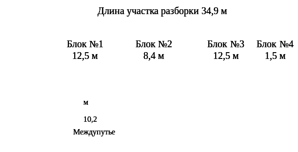 Стрелочный перевод проекта 2750 разделяется на 4 блока (в соответствии с рисунком №3.1), производится вырезка балласта по торцам и в шпальных ящиках, опробывание гаек стыковых и клеммных болтов.