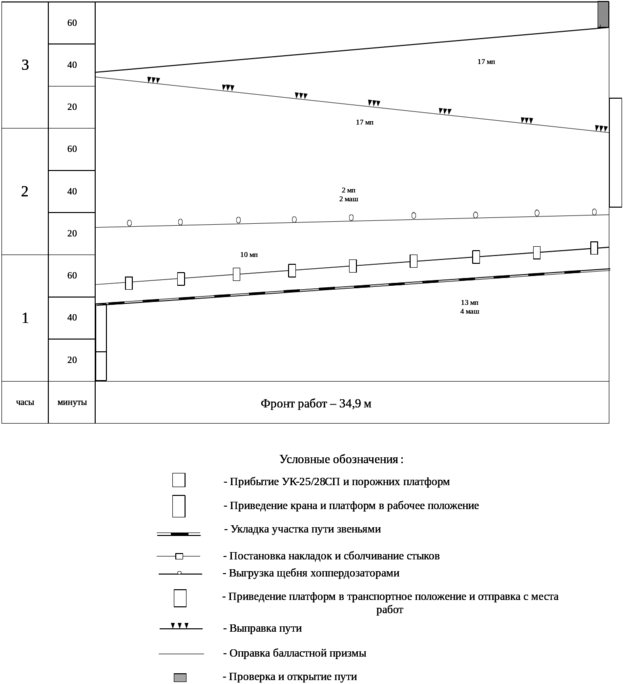 График производства работ в «окно» по укладке звеньев на место демонтированного стрелочного перевода приведен в рисунке 3.4.
