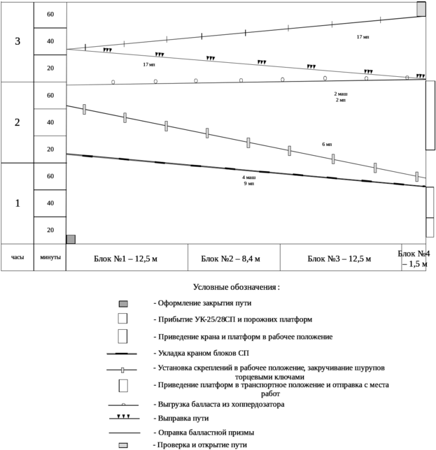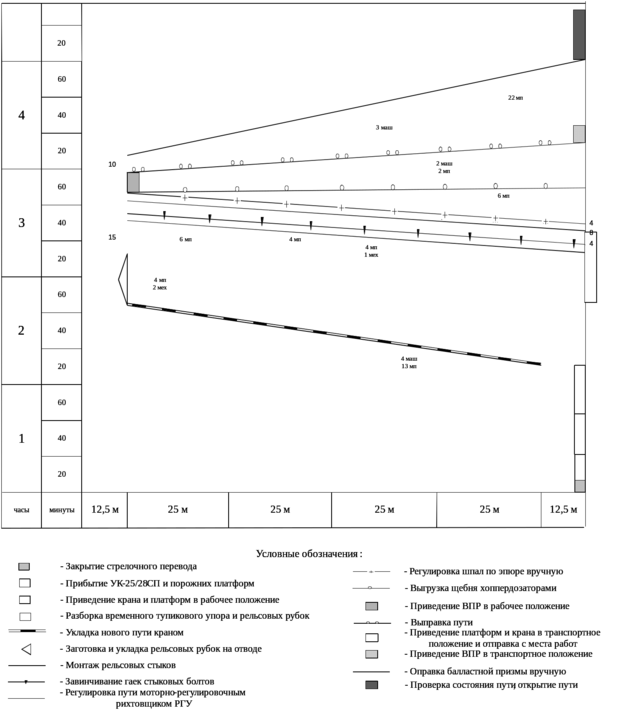 График производства работ в «окно» по укладке нового пути указан на рисунке 3.8.