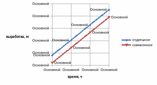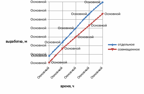 Средние нормы выработки с учетом корректирующих коэффициентов для отдельного и совмещенного «окон» в виде графика представлены на рисунке 4.2.