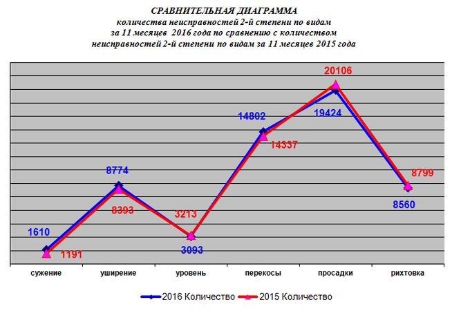 | сентябрь 1.ПД-8 Нечетный путь 8142 км пк9, Р3м 37\8; 2.ПД-7 Четный путь 8134 км пк1 Пр.П33/4; пк2 П26/4; пк10 3ст; 3.ПД-12 Четный путь 8196 км пк6, П26\20; 4.ПД-13 Четный путь 8210 км пк4 Уш 1543 мм; пк6 Уш 1543мм; пк 10 Ш10; 5.ПД-13 Четный путь 8212 км пк7, П19\9; 6.ПД-13 Четный путь 8213 км пк2, П 17/10; 7.ПД-13 Четный путь 8214 км пк2, П3м 19/19; 8.ПД-14 Четный путь 8218 км пк10, К100; 9.ПД-14 Четный путь 8223 км пк 10, К60; 10.ПД-14 Четный путь 8225 км пк10, К60; 11.ПД-11 Нечетный путь 8189Б км пк7, Р3м 51\24; |