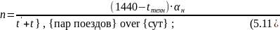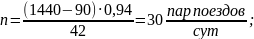 Таким образом, при безостановочном скрещении поездов на одном из раздельных пунктов пропускная способность перегона в парах поездов (рис. 5.4) составит: