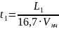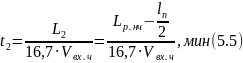 Если обозначить время хода поезда между II и III положениями t2, мин, и принять, что предельный столбик входной стрелки и выходной сигнал размещены в одном сечении, то получим:
