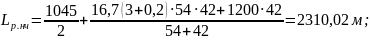 – расстояние от ОБС до выходного сигнала в четном и нечетном направлениях, соответственно, а полная длина двухпутной вставки с учетом длины горловин
