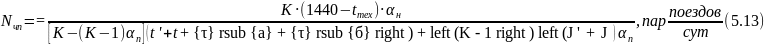 – коэффициент надежности с учетом отказов подвижного состава. В целом коэффициент надежности при расчете наличной пропускной способности принимается на неэлектрифицированных однопутных линиях 0,94;