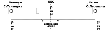 Расстояние от ОБС до выходного сигнала в четном и нечетном направлениях на перегоне ст. Таланджа – ст. Перевальный: