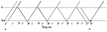 На однопутных участках, оборудованных автоблокировкой, расчет наличной пропускной способности по перегонам ведется при частично-пакетном графике, расчетная схема которого приведена на рисунке 1.6.