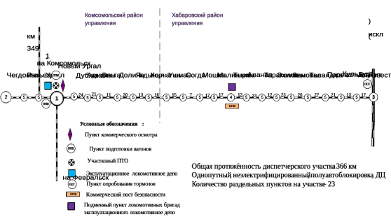 Рисунок 1.1. Схема диспетчерского участка Новый Ургал (вкл) – Известковая (искл) – Чегдомын (вкл) 1.2 Технология развоза местного груза и порожних вагонов на участке Известковая – Новый Ургал