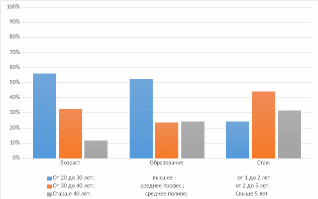 Таким образом, среди управленческого персонала большинство составляют люди в возрасте до 30 лет. Среди производственного персонала также преобладающее количество сотрудников в возрасте до 30 лет.