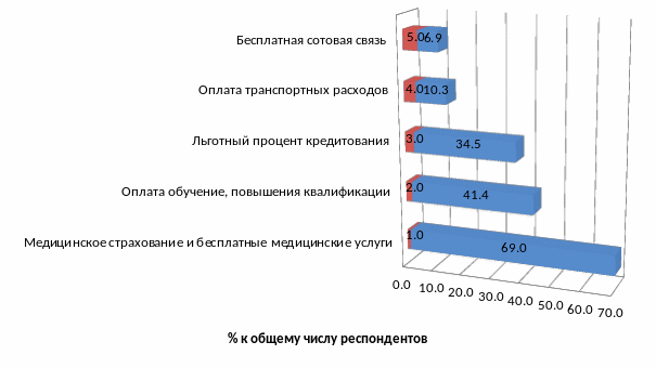 Такие результаты можно прокомментировать следующим образом. Сегодня стоимость медицинских услуг в крае очень высокая, поддержка компании в получении качественного медицинского обслуживания и льготный процент кредитования для сотрудников очень важны.