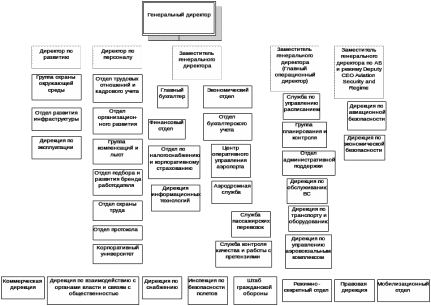 В структуру аэропорта входит большое количество дирекций и отделов, от полного взаимодействия которых зависит вся деятельность данного авиапредприятия.