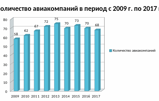 Рисунок 2.2. Количество обслуживаемых авиакомпаний в период с 2009 г. по 2017 г.
