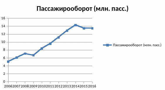 Заметное количество крупнейших аэропортов страны за 2015-2016 гг. показало падение общих объёмов пассажиропотока. Динамика пассажиропотока за 2006-20016 гг. ООО «Воздушные Ворота Северной столицы» аэропорт Пулково представлен на рисунке 2.3 [22].