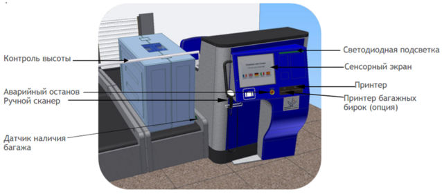 Установка киоска позволяет пассажиру с багажом после прохождения самостоятельной регистрации так же самостоятельно сдать багаж, приклеив к нему транспортную бирку.