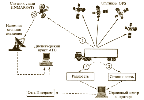 Спутниковая система (диспетчерские системы управления транспортом) для автомобильного транспорта – это спутниковая система транспортной связи и контроля за грузоперевозками, которая обеспечивает высоконадежную и удобную двустороннюю текстовую связь диспетчера со всеми своими водителями в любой точке РФ и СНГ в любое время суток, а также постоянное наблюдение за их движением по карте автодорог на экране компьютера и телеметрический контроль состояния груза.[20]