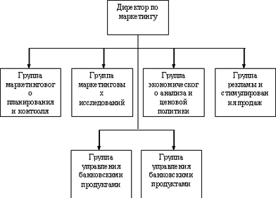 Ему напрямую подчинены руководители групп департамента маркетинга, а в специальном отношении – директора департаментов, подразделений и служб, выполняющие маркетинговые функции и задачи в банке.