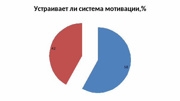 ольшая часть опрошенных (58%) устраивает система мотивации в Эксплуатационном локомотивном депо, но все же 42 % сотрудников система мотивации не устраивает ( рисунок 3).
