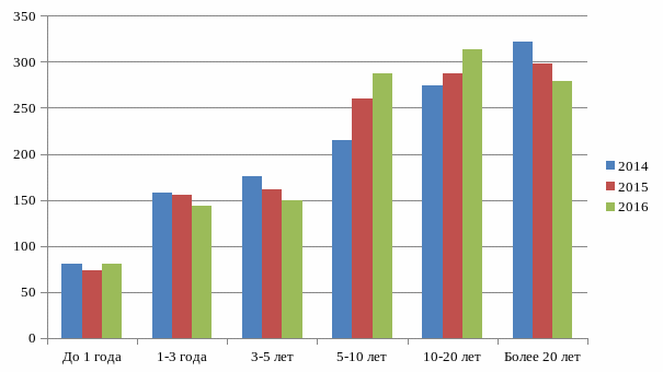 | Более 20 лет | 322 | 26 | 298 | 24 | 279 | 22 |