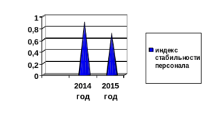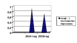 В таблице 10 представлена динамика численного состава работников ПАО «Восточный экспресс банк» за 2014 – 2015 гг. по следующим показателям: индекс стабильности персонала, коэффициент оборота по приему рабочих, коэффициент оборота по выбытию, коэффициент текучести кадров, коэффициент постоянства персонала предприятия.