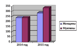 В 2014 году среднесписочная численность персонала ПАО «Восточный экспресс банк» увеличилась на 142 человека и составила 624 человека по сравнению с предыдущим годом. Для того чтобы увидеть тенденцию изменения структуры персонала за 2014 и 2015 года построим сравнительную таблицу (табл.7)