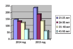 – Рисунок 8 показывает, что наибольшее количество – это молодые работники возрастом от 21 до 25 лет, меньшее стабильное количество – от 31 до 40 лет, и наименьшее от 41 до 50 лет, в тоже время, количество от 26 до 30 лет увеличилось.