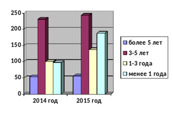 – Рисунок 10 показывает, что стабильное количество персонала имеет стаж от года и более, что касается работников, которые работают в организации менее года, то их количество тоже не изменилось.