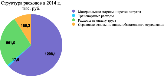 В 2014 - 2015 году в структуре расходов произошли изменения. Так наибольшие доли занимали материальные и прочие затраты 62,89 и 61,42% соответственно, далее следуют расходы на оплату труда 27,22 и 28,83%, наименьшую долю составляют транспортные расходы 0,85 и 1,10% соответственно.