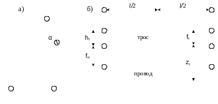 Рисунок 8.1 – Расположение и подвес троса: а) на опоре, б) схема подвеса