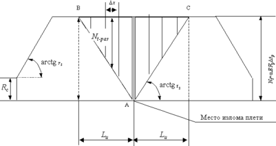 Эпюра продольных температурных сил, в момент излома имеет вид трапеции.