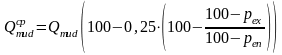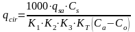 удельный расход воздуха, Нм3/ч м3, находится по формуле:
