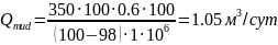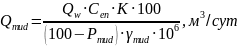 где Qw – суточный расход сточных вод, м3/сут; Cen – концентрация взвешенных веществ, мг/л; K – эффект очистки в долях единицы; Pmud – влажность осадка, %;