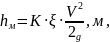 где K – коэффициент, учитывающий увеличение потерь напора; ξ – коэффициент местного сопротивления; Vp – скорость движения в камере перед решеткой, м/с;
