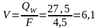 Площадь фильтра первой ступени F = 2,25 м2 . Тогда расход при промывке составит