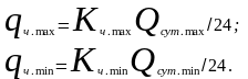 Расчетные часовые расходы воды qч, м3/ч, определяются по формулам: