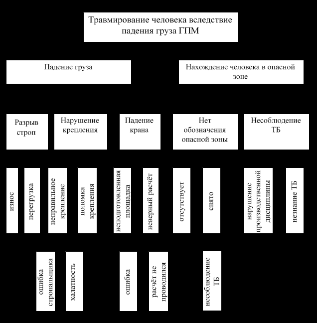 Рисунок 4.1 Причины травмирования человека вследствие падения груза ГПМ