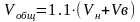 Общий объем земляных работ определяется с учетом неучтенных работ по формуле: