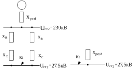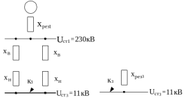 Для расчёта токов короткого замыкания на шинах различного напряжения составляется схема замещения, которая представлена в ПРИЛОЖЕНИ В.