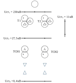Номинальное напряжение обмоток: UВ = 230 кВ, UС = 27,5 кВ, UН = 11 кВ;