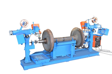 На установке производится автоматическая электродуговая наплавка шеек оси колёсной пары под слоем флюса.