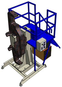 - Установка имеет 3 наплавочные головки. Имеет возможность осуществлять наплавку параллельно двух наклонных плоскостей. Подвижная гидравлическая платформа для удобной и быстрой загрузки-выгрузки балки.