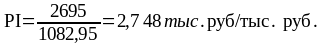 Индекс рентабельности инвестиций рассчитаем по формуле:
