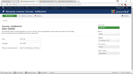 Рисунок 33 – Настройка плагина AskMyAdmin