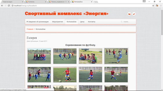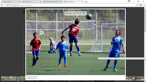 По требованиям заказчика фотогалерея сайта должно иметь хорошую визуализацию картинок, с разворотом их на всю страницу, с возможностью просматривать фото поочередно, а также поддерживать функцию слайд-шоу. Для удовлетворения потребностей заказчика подходит плагин Mavik Thumbnails. Результат его использования представлен на рисунке 28.