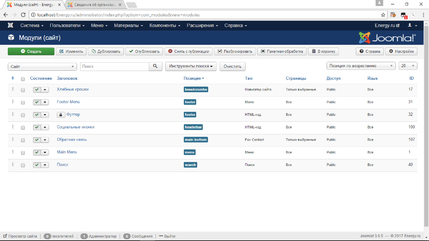 Далее необходимо отредактировать модули, которые применяются в шаблоне, т.е. оставить только те, которые нужны для сайта (рисунок 21).