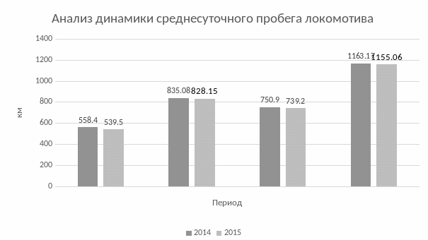 На рисунке 2.5 представлен анализ динамики среднесуточного пробега локомотивов.