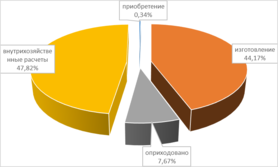 | приобре-тение | изгото-вление | оприходовано | внутрихозяйственные расчеты | |||||||
