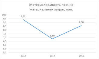 | материалоемкость прочих материальных затрат, коп. | 9,37 | 6,80 | 8,58 | -2,57 | 72,58 | 1,78 | 126,14 |