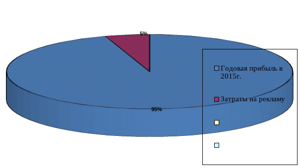 Но пока данная политика продвижения не используется компанией «Энергия» целесообразно рассмотреть количество средств, затраченных на рекламу в 2014 г. и в 2015г. по отношению к годовой прибыли (рис.25 и рис.26)