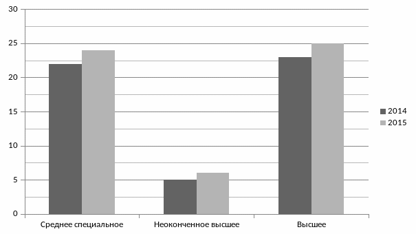Динамика структуры персонала по уровню образования показана на рисунке 21.