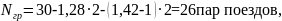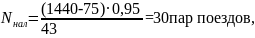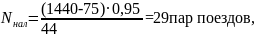 Наличная пропускная способность графика определяется по формуле, пар поездов: